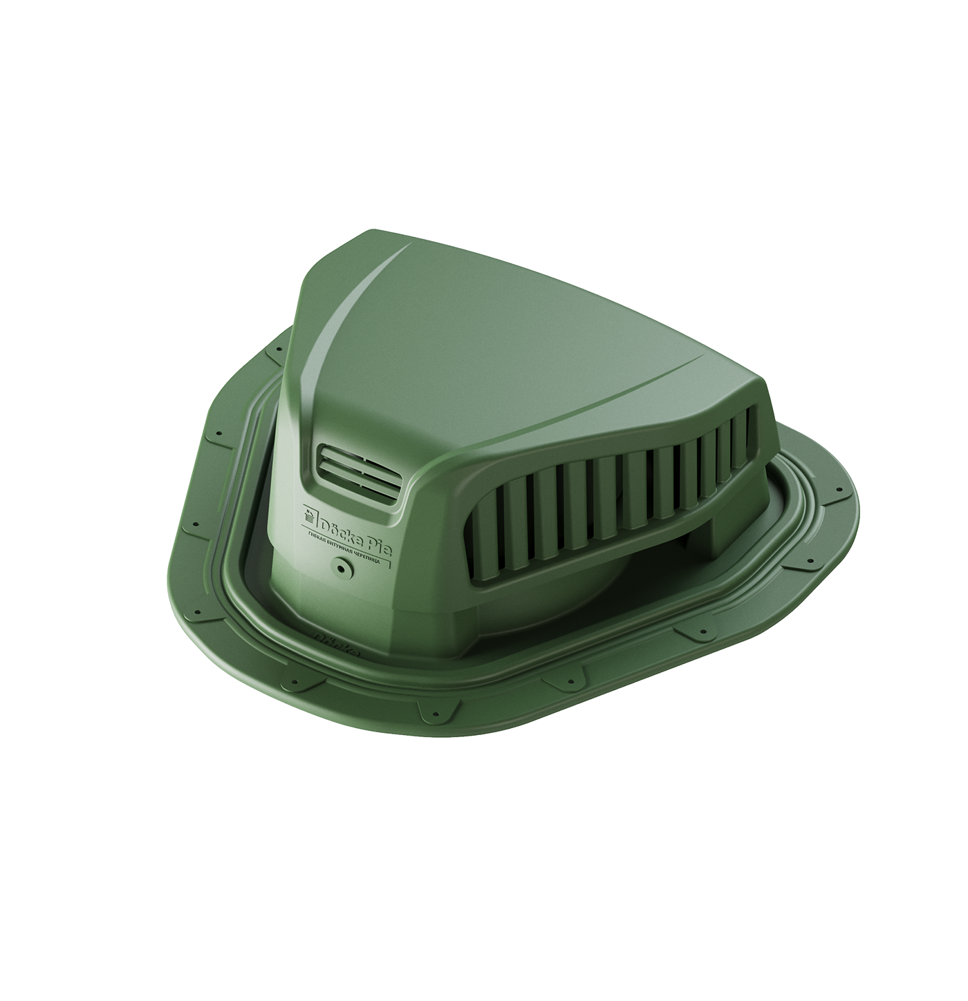 Аэраторы натурального зеленного оттенка смотрятся аккуратно и неброско. Они хорошо дополняют дизайн кровли, выполненной в тёмно-зеленных тонах, подходят для однотонной черепицы и гонтов с эффектом градиента.