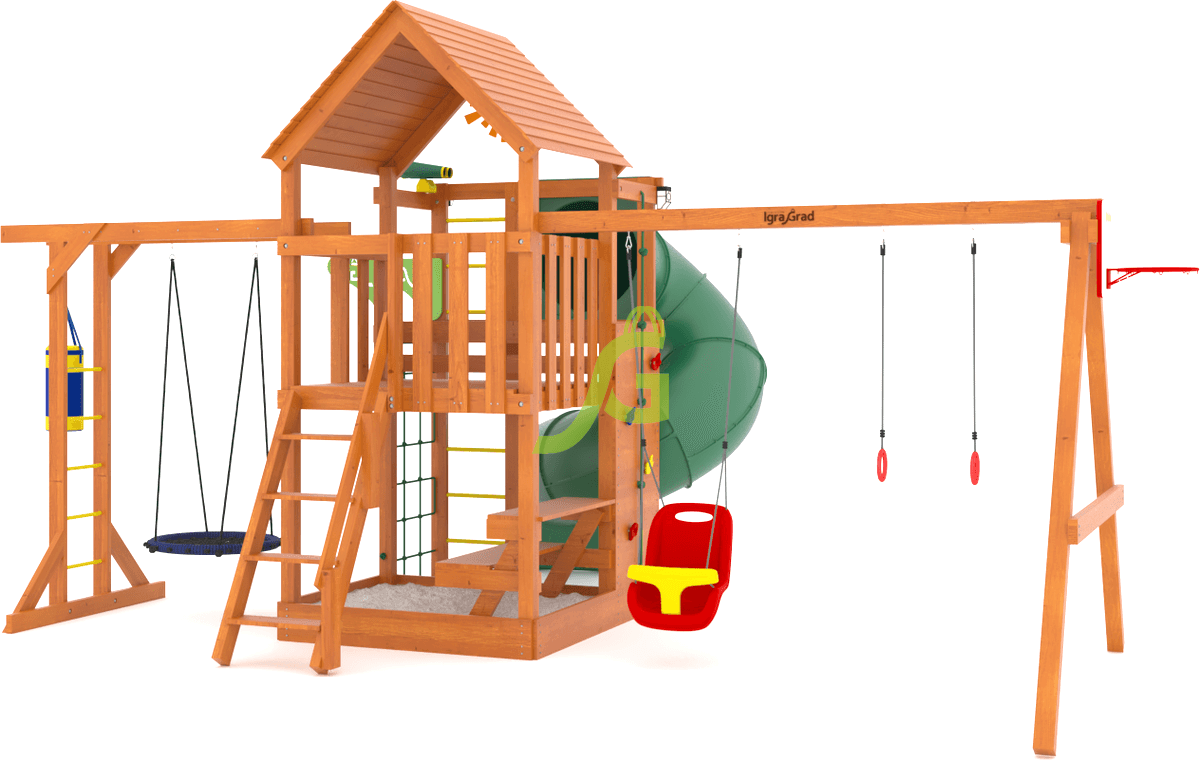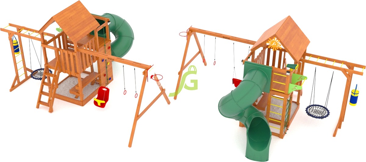 Обращаем Ваше внимание, что цвет установленной детской площадки может отличаться от представленных изображений на сайте. Специфика окраски нетоксичными пропитками допускает отклонения в цветовой гамме отгружаемых изделий вследствие различного цвета натурального природного сырья и естественных компонентов, используемых для производства площадок.