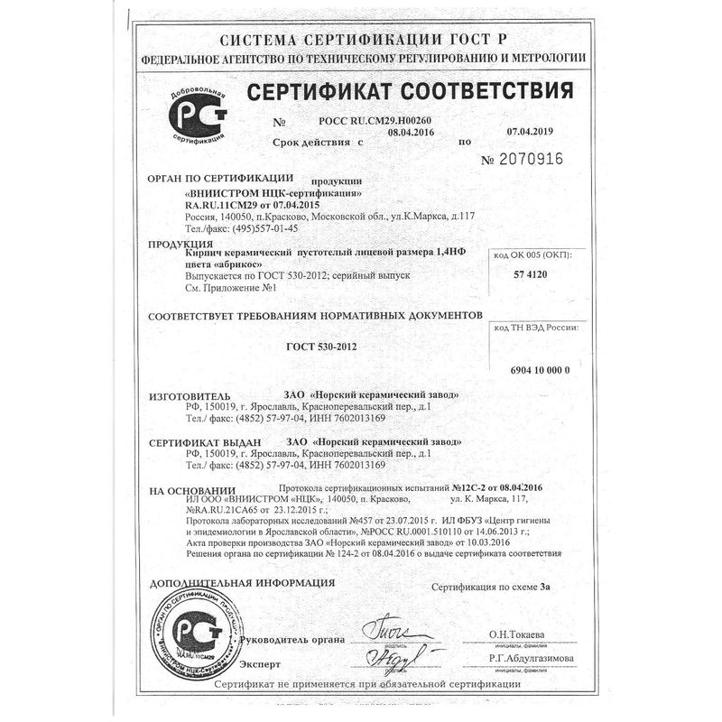 Кирпич лицевой НКЗ “Абрикос” гладкий утолщенный