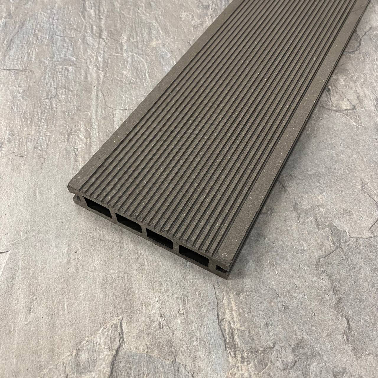 Террасная доска CM Decking NATUR из древесно-полимерного композита ДПК. Пустотелая. Доступные размеры, мм: 135х25х3000. Длина 3 метра. Поверхности: одна сторона с тиснением под дерево, другая сторона вельвет. Доступно 2 цвета. Фирменные комплектующие в цвет: уголок, торцевая заглушка, ступени, панель универсальная, доска торцевая.