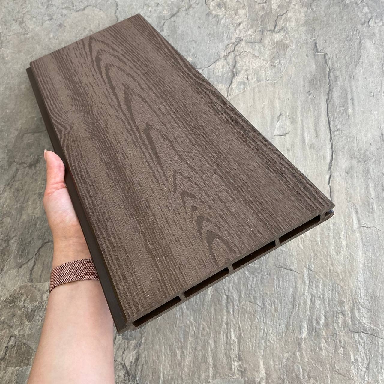 Заборный профиль из древесно-полимерного композита CM Fencing в цветах Эбен и Мербау.
