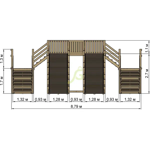Габариты детской деревянной зимней горки Зимняя горка Snow Fox, 4 ската: