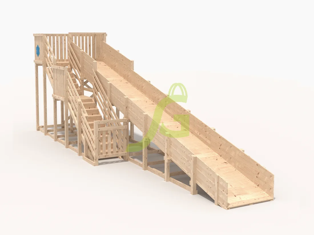 Как проводить зимнее время? Конечно же, кататься на саночках, ледянках с прекрасно скользящей горки. Для этого представляем большую деревянную горку для улицы Snow Fox. Её скат составляет целых 10 метров, а по ширине он чуть больше одного метра. Даже мамы и папы могут вспомнить счастливое детство и скатиться с конструкции вместе с детишками, не стесняясь проявлять свои эмоции, которые так и просятся вырваться наружу!