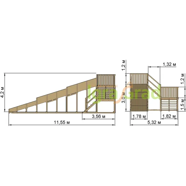 Зимняя деревянная горка модель «Snow Fox» со скатом 10 метров и удобной расширенной конструкцией лестничного пролета. Это современная, удобная детская заливная горка для зимних развлечений на свежем воздухе. Горка, высотой 4, 2 м и длиной 11,5 м, может быть установлена в общественных местах: парке, детском саду, школе, на детской площадке во дворе, в игровых комплексах. Скатываться с этой замечательной горки можно с любого «транспорта»: саночек, ледянке, тюбинге!